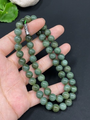 H33901445 Hetian Jade Bead Necklace Worksize about 8.7mm Total Weight about 55.2g