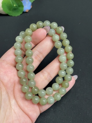H33859208 Hetian Jade Bead Necklace, approx. 7.8mm, total weight approx. 45.5g