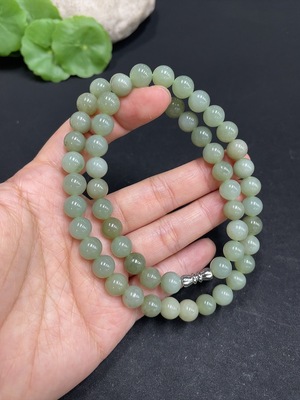 H34969340 Hetian Jade Bead Necklace Approx. 8mm Total Weight Approx. 46.1g Non-Gold