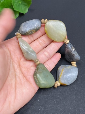 H1218200 Hetian Jade Bead Necklace (Two Pieces), Some with Cracks, Size 9.9/11.8mm, Total Weight 84.3g