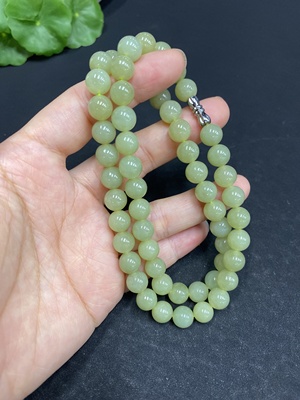 H32759648 Hetian Jade Bead Necklace, approx. 9.2mm, total weight approx. 65.6g