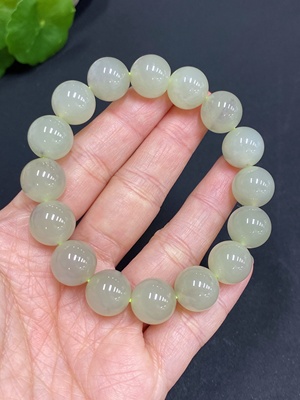 H35130679 Hetian Jade Bead Bracelet, Approx. 11.7mm, Total Weight About 47.5g, Non-Hetian Jade Beads Included