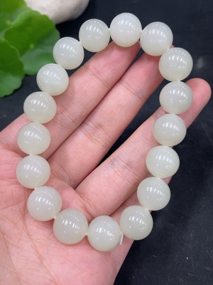 H31662965 Hetian Jade Bracelet, approx. 11.8mm beads, total weight about 47.1g