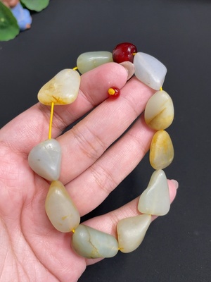 H36236389 Hetian Jade Bracelet, Total Weight Approx. 43.5g, Undetermined Skin Color Origin, Contains Other Mineral Components, Accompanying Beads Not Hetian Jade