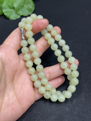 H36258670 Hetian Jade Bead Necklace, approx. 7.6mm, total weight approx. 42.9g