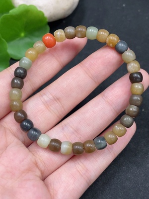 H36270909 Hetian Jade Jasper Bracelet, approx. 6.9mm beads, total weight about 17.3g