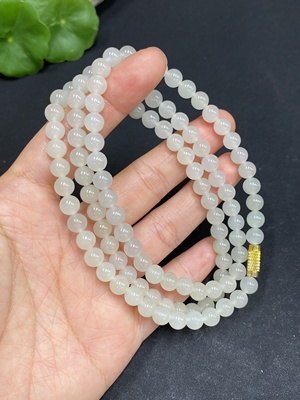 H36214713 Hetian Jade Bead Necklace, approx. 6mm, total weight about 38.2g, non-gold