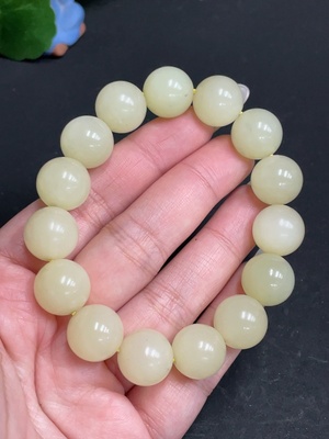 H32699574 Hetian Jade Bracelet, Approx. 13.6 mm Beads, Total Weight Approx. 58.8g
