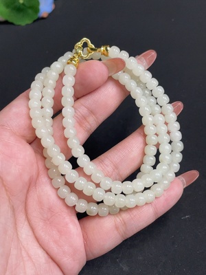 H32770657 Hetian Jade Bead Necklace, Approx. 4.8mm, Non-Gold-Inlaid, Total Weight Approx. 16.6g