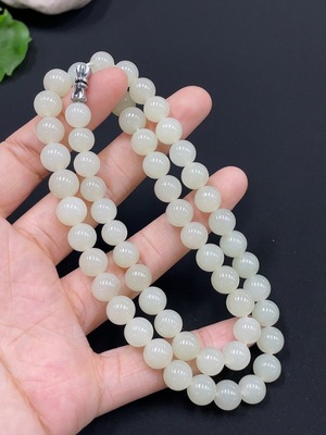 H35118233 Hetian Jade Bead Necklace, Approx. 7.6 mm, Total Weight Approx. 17.6g