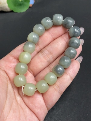 H31693988 Hetian Jade Bracelet (Undetermined Skin Color Origin, Non-Hetian Jade Beads Included, Contains Other Mineral Components, Total Weight Approx. 77.3g)