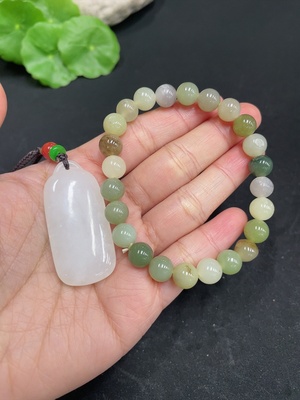 H36270647 Hetian Jade Pendant, Plain Pendant, 8mm Bracelet, Total Weight Approx. 34.8g (Including Rope), Contains Other Mineral Components