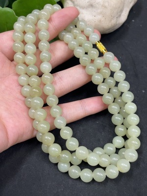 H32770548 Hetian Jade Bead Necklace, Approx. 9mm, Total Weight Approx. 63.4g