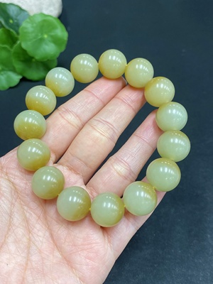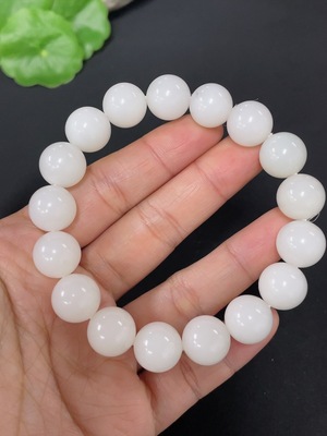 H31598095 Hetian Jade Bracelet, Approx. 12.6 mm Beads, Total Weight Approx. 60.8g
