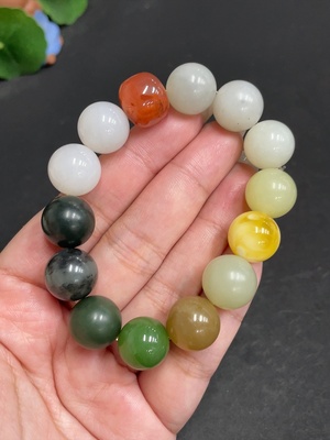 H38489657 Hetian Jade Jasper Bracelet, approx. 11.8mm beads, total weight approx. 52.2g