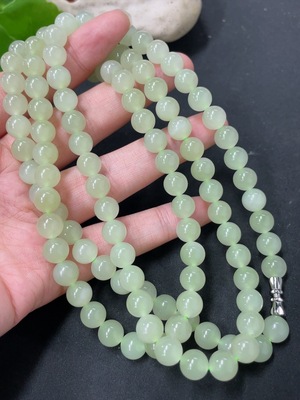H37412895 Hetian Jade Bead Necklace, Approx. 8mm, Total Weight About 94g