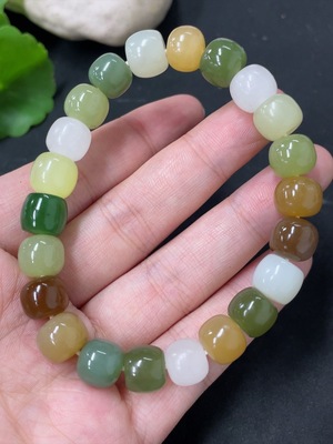 H38471962 Hetian Jade Bracelet, approx. 11.9mm, total weight approx. 44.4g, with non-Hetian Jade beads