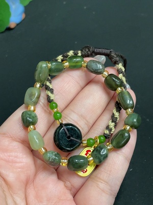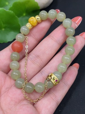 H31659222 Hetian Jade Bracelet (Matching Beads Not Hetian Jade, Total Weight Approx. 18.9g, Non-Gold)