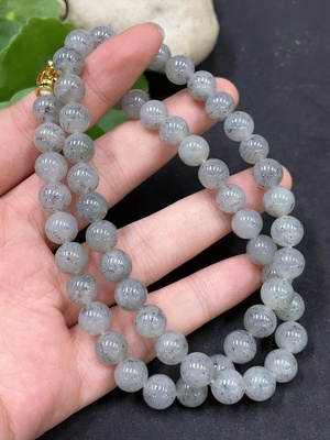H34970438 Hetian Jade Bead Necklace, Approx. 8mm, Non-Gold Inlaid, Total Weight Approx. 47.9g