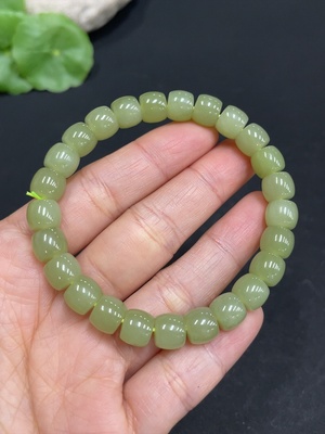 H34956558 Hetian Jade Bracelet, Approx. 7.9 mm Beads, Total Weight Approx. 18.2g