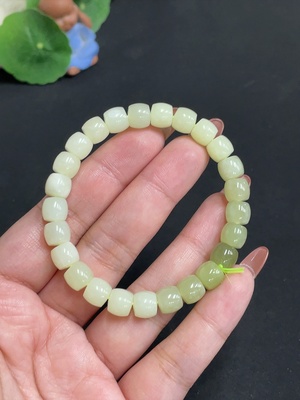 H33846066 Hetian Jade Bracelet, approx. 7.7mm beads, total weight about 16.9g