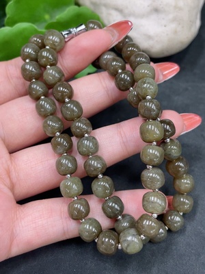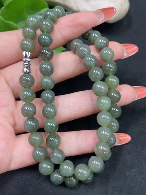 H34052576 Hetian Jade Bead Necklace, Approx. 8mm, Total Weight Approx. 90.3g