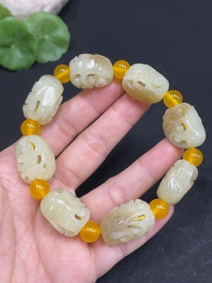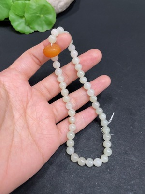 H35130424 Hetian Jade Bracelet, approx. 5.8mm beads, total weight approx. 13.7g, undetermined skin color origin, non-Hetian Jade accessory beads