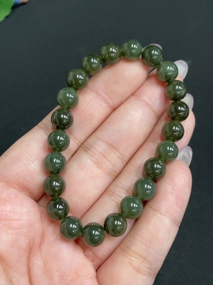 H33931258 Hetian Jade Bead Bracelet, Approx. 7.5mm, Total Weight About 17.4g, Containing Other Mineral Components