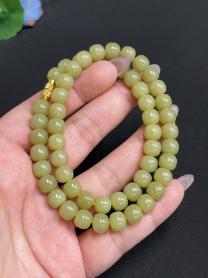 H35111231 Hetian Jade Bead Necklace, Non-Gold, Matching Beads Not Hetian Jade, Approx. 6.5mm, Total Weight Approx. 44.4g