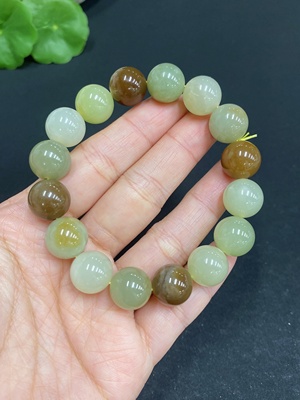 H35203888 Hetian Jade Bracelet with Other Mineral Components, Undetermined Skin Color Origin, Non-Hetian Jade Beads, Total Weight Approximately 115.3g