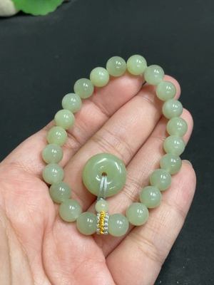 H26999826 Hetian Jade Bracelet, Undetermined Skin Color Origin, Contains Other Mineral Components, Matching Beads Not Hetian Jade, Total Weight Approximately 52g