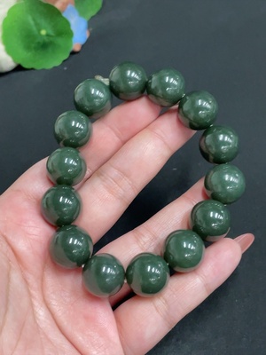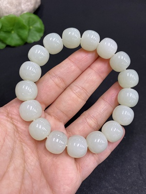 H33846058 Hetian Jade Bracelet, approx. 11.9mm beads, total weight about 43.4g
