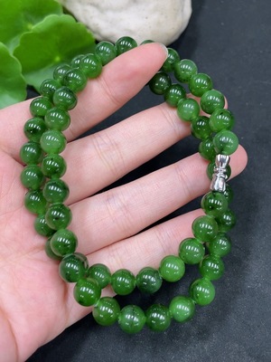 H34955564 Hetian Jade Bead Necklace, Approx. 7.7mm, Total Weight Approx. 45.1g, Non-Gold