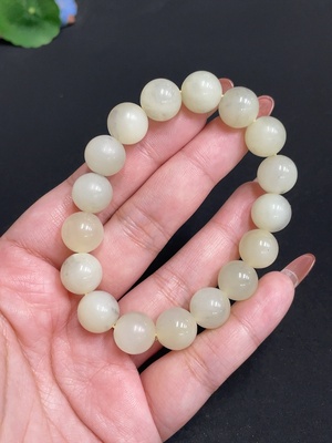 H25894101 Hetian Jade Bracelet Approx. 11.9mm Beads Total Weight Approx. 46.5g