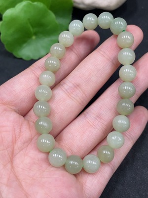 H33881134 Hetian Jade Bracelet, Approx. 6.8 mm, Total Weight About 14.4g, Contains Other Mineral Components, Beads Not Hetian Jade, Many Impurities
