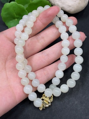 H33884659 Hetian Jade Bead Necklace, approx. 7.6mm max. bead size, total weight approx. 43.4g