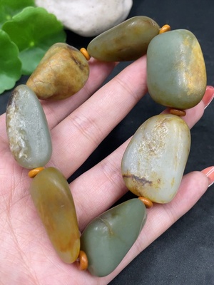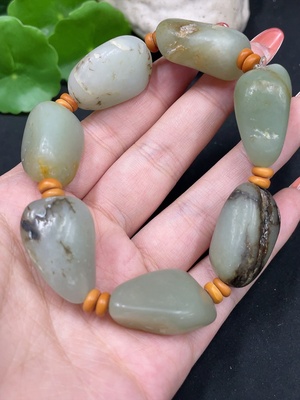 H27061093 Hetian Jade Bracelet Bead Chain Approx. 8.4/6mm Total Weight About 62.3g