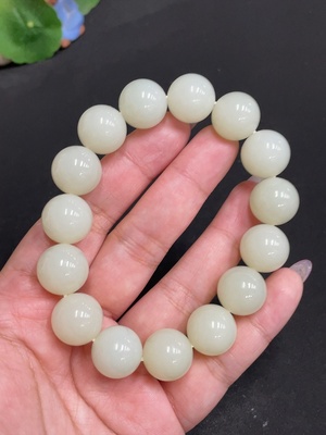 H38505885 Hetian Jade Bracelet, approx. 11.5mm, total weight approx. 43.4g, non-Hetian Jade beads