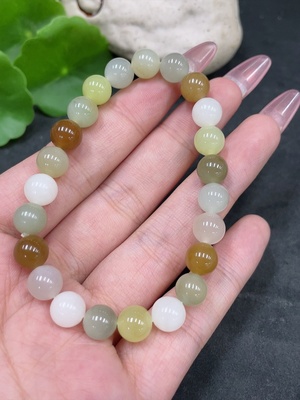 H32751304 Hetian Jade Bracelet, Undetermined Skin Color Origin, Non-Hetian Jade Beads Included, Containing Other Mineral Components, Total Weight Approximately 88.4g