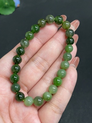 H31678534 Hetian Jade Bracelet, Approx. 7.6 mm Beads, Total Weight Approx. 17.1g