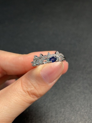 C32815654 Sapphire Ring Pt900 Colour Origin Undetermined With Diamond Total Weight Approx. 6.43g Size 11