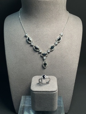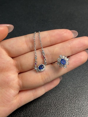 C25931616 Sapphire Necklace + Ring Adjustable Non-Gold Setting Total Weight Approx. 5.55g