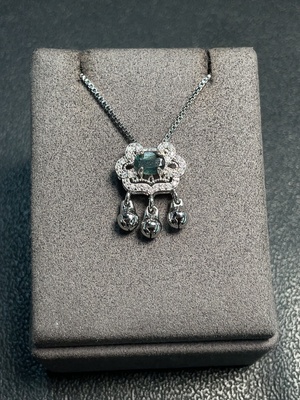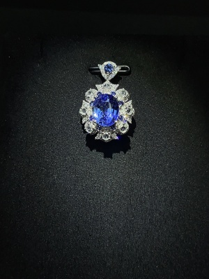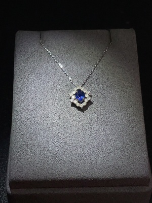 C38502192 Sapphire pendant with diamond accents, 18K chain (non-gold), total weight approx. 4.37g including chain. AIGS certified: Royal blue, heated, Sri Lanka origin, vivid blue 3.14cts.