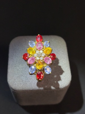 C38528009 Sapphire Ring 18k Gold Color Origin Undetermined Accent Stones Possibly Non-Natural Total Weight Approx. 6.31g Adjustable