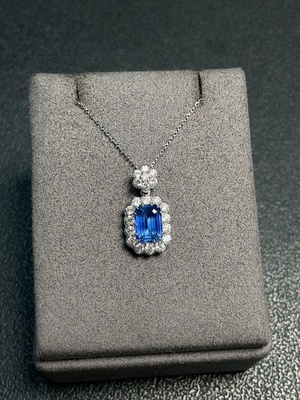 C37369928 Sapphire Necklace Pendant Pt90% Chain Pt85% with Diamond Accents Total Weight Approx. 1.98g