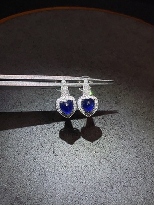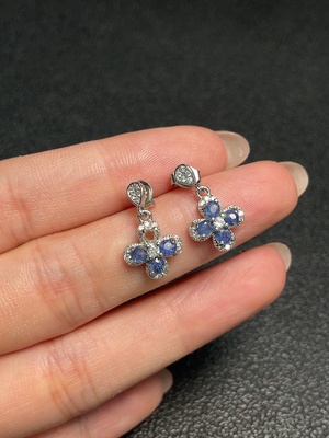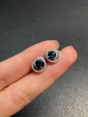 C37455647 Sapphire Earrings, 37% Gold Content, Total Non-Diamond Weight Approx. 2.07g, Stone Size Around 4.3mm
