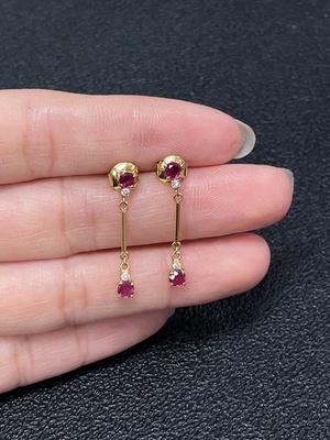 C36241322 Sapphire Earrings with 58% Gold Content, Diamond Accents, Total Weight Approx. 1.42g, Stone Size 2.8mm
