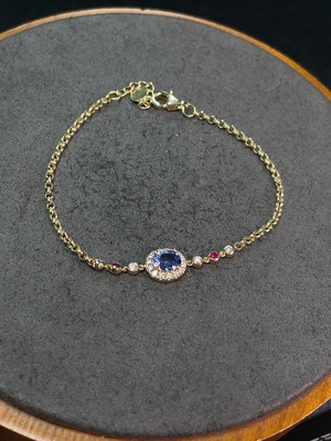 C38498740 18k Blue Sapphire Bracelet with Diamond Accents, Total Weight Approximately 2.88g