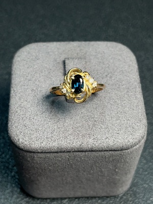 C35097690 Sapphire Ring 18K Gold with Diamond Accents, Total Weight Approx. 2.21g, Size 12, Stone 5.5*3.3mm