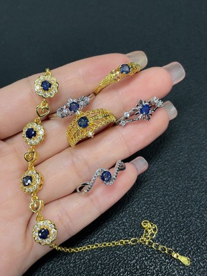 C39589986 Sapphire Inlaid Ring + Bracelet Non-Gold Inlaid Total Weight Approx. 12.80g